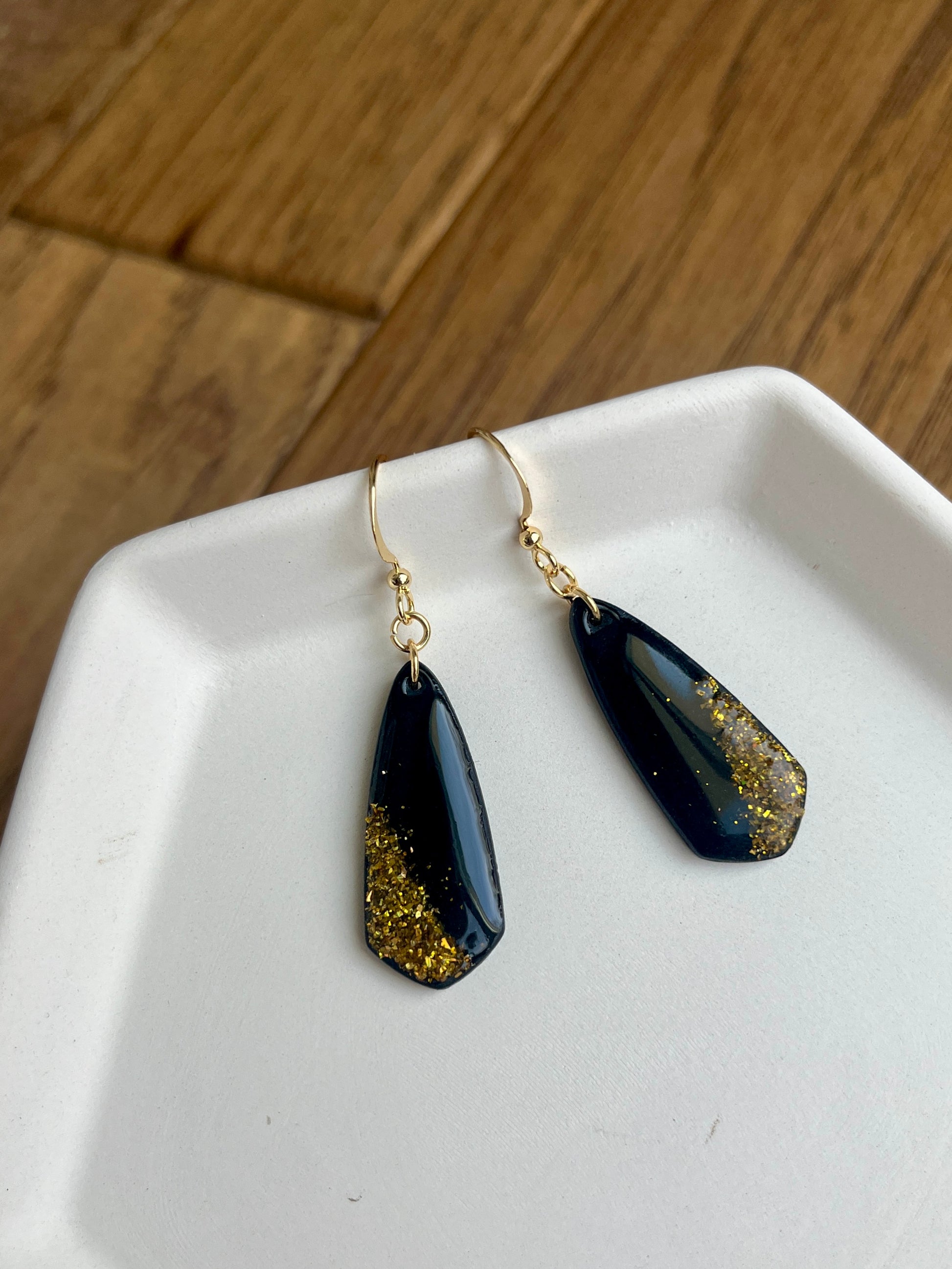 Polymer clay earrings are very lightweight + very comfortable to wear.