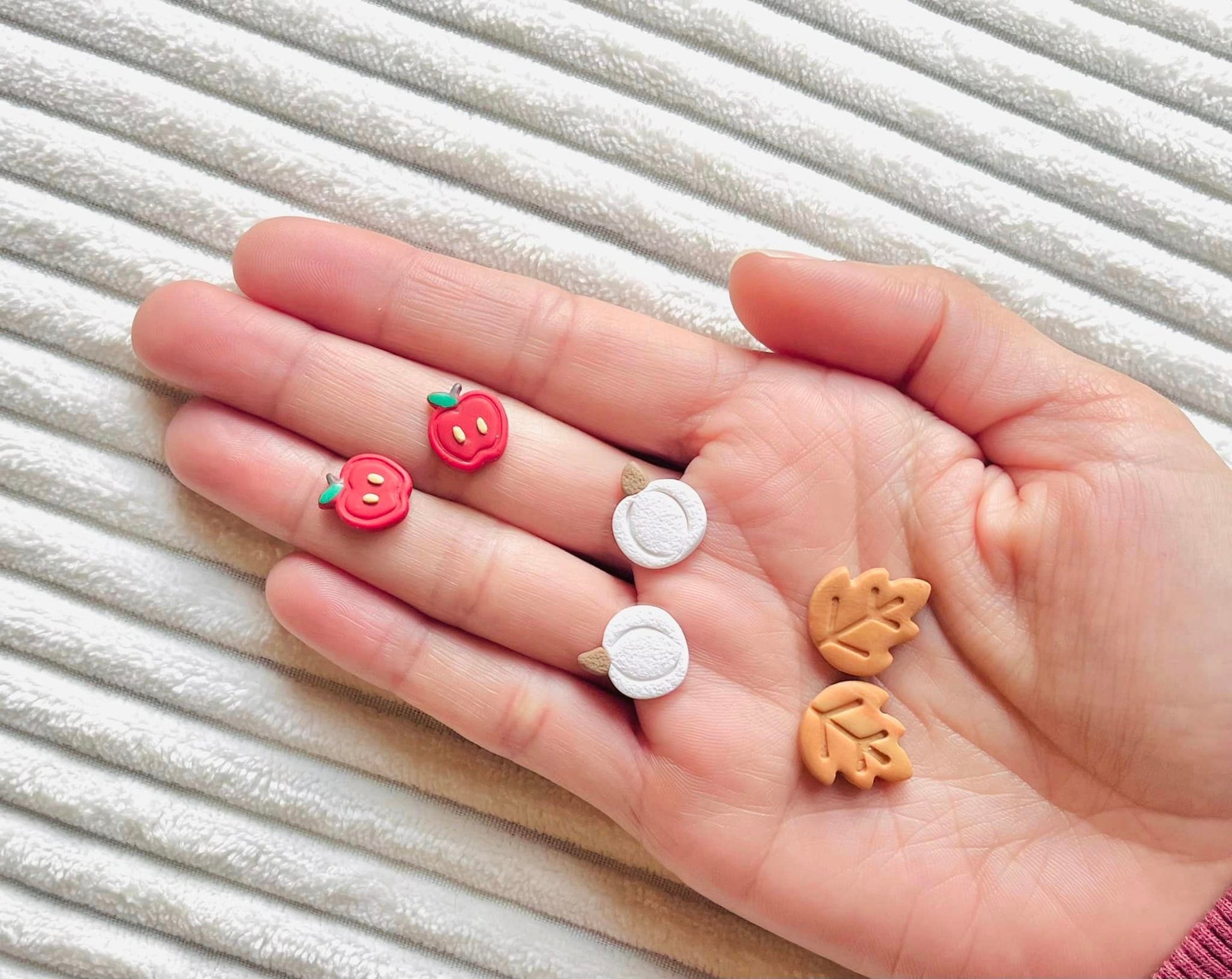 Polymer clay earrings are very lightweight + very comfortable to wear.