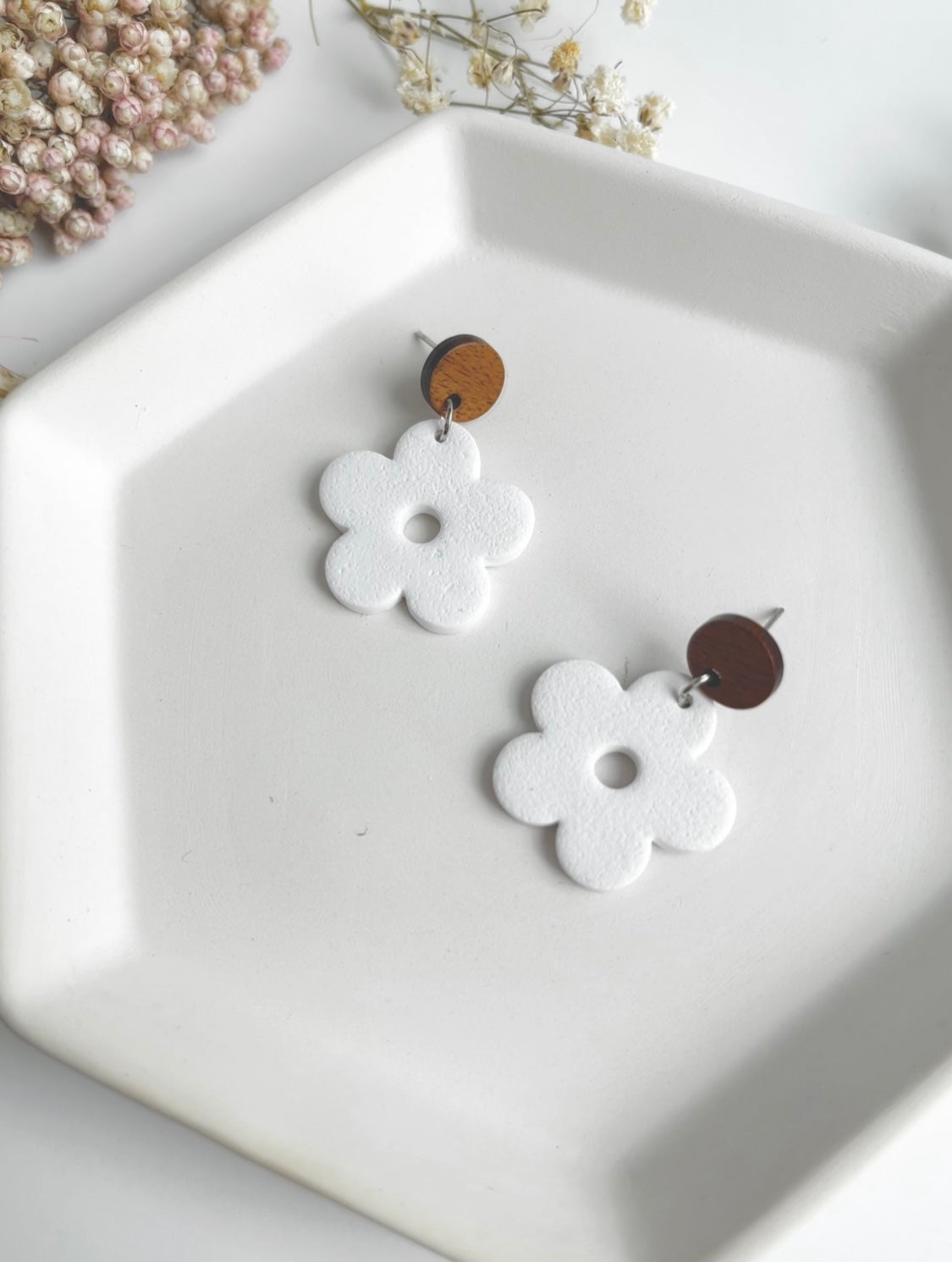 Polymer clay earrings are very lightweight + very comfortable to wear.