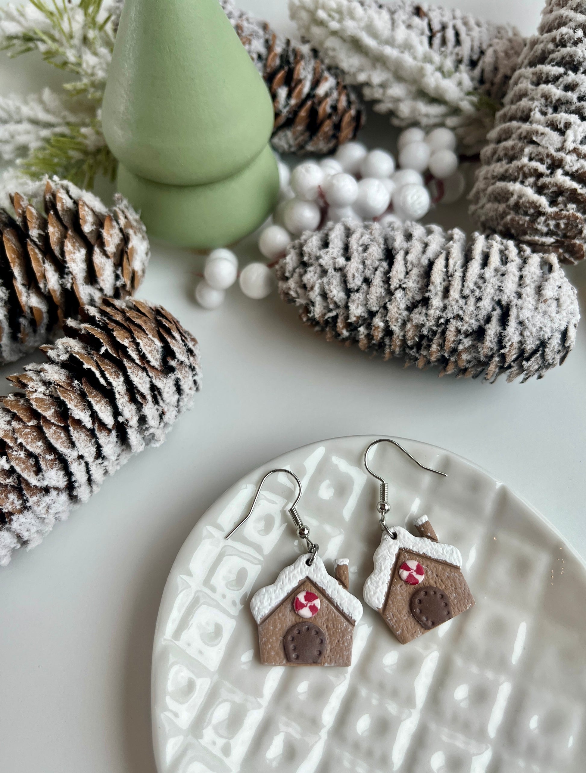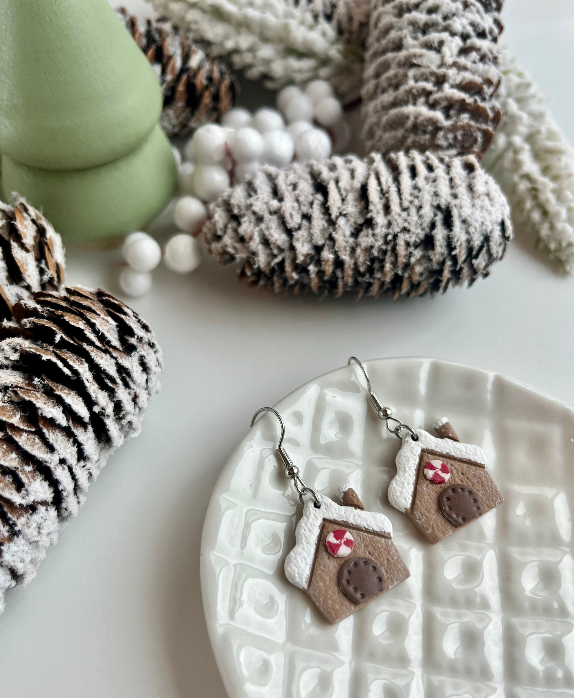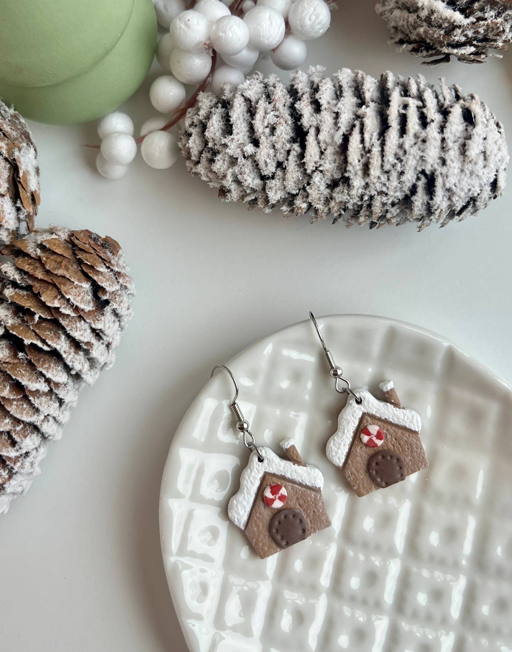 1. Gingerbread house, Holiday earrings, lightweight jewelry, polymer clay