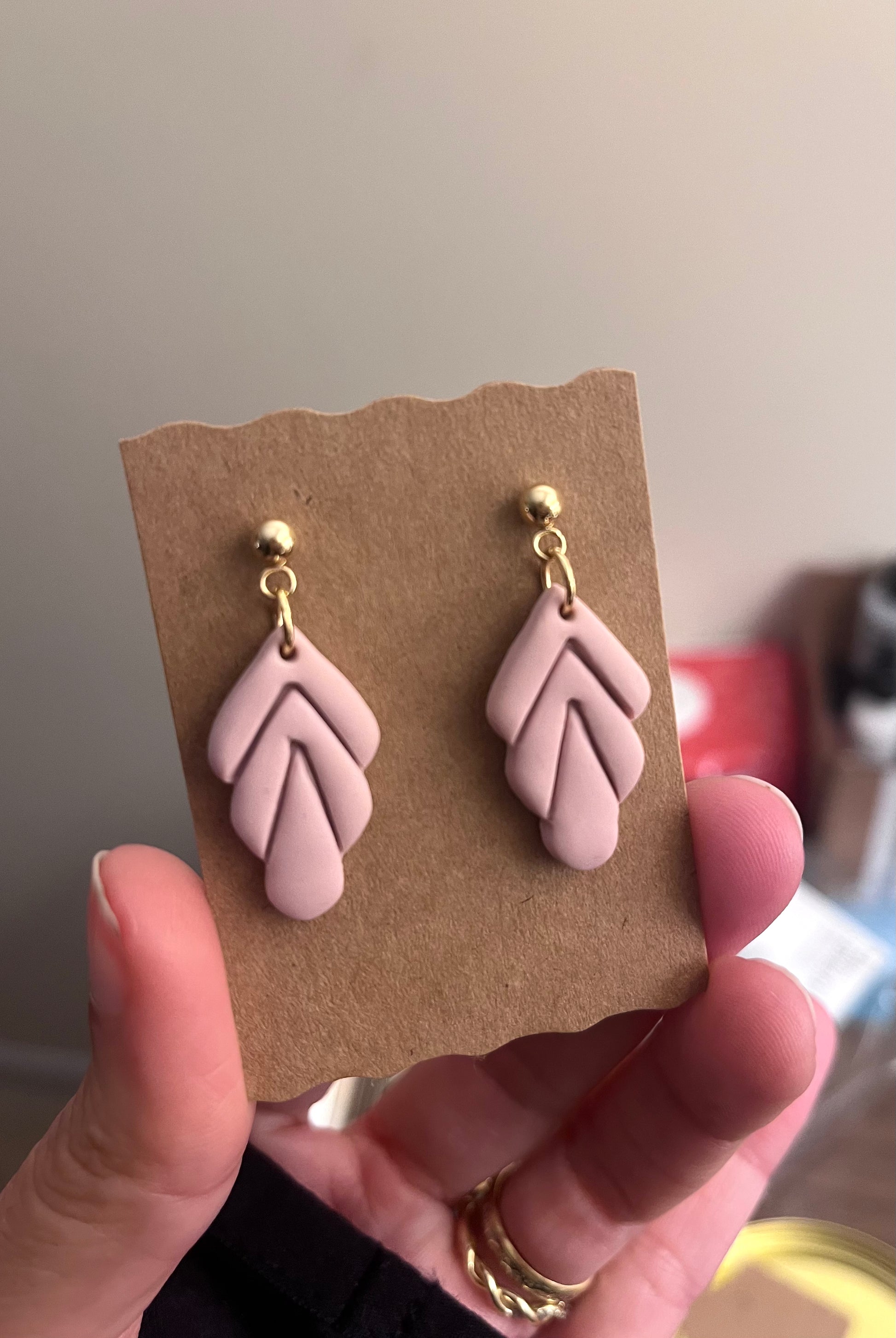 Polymer clay earrings are very lightweight + very comfortable to wear.